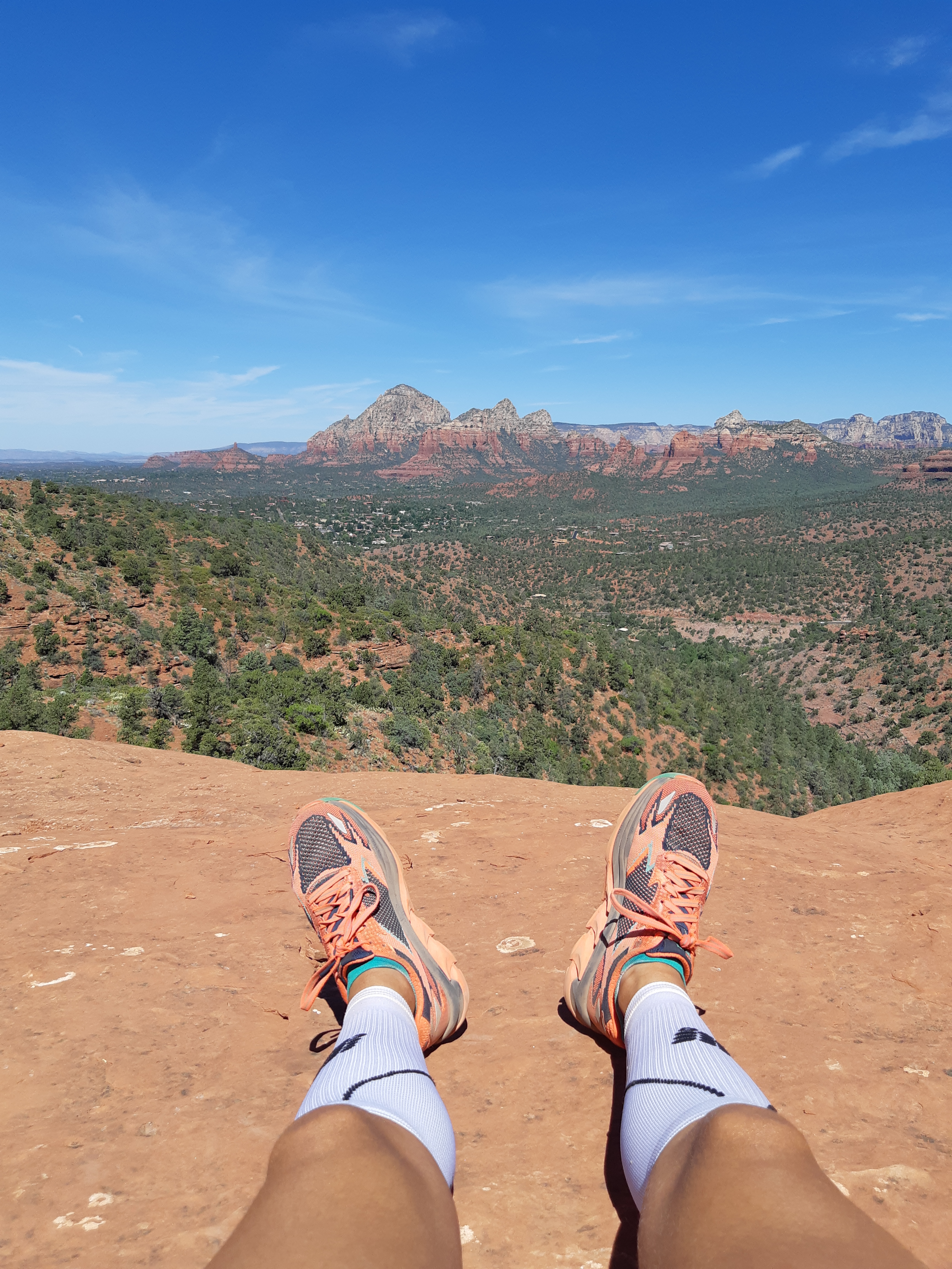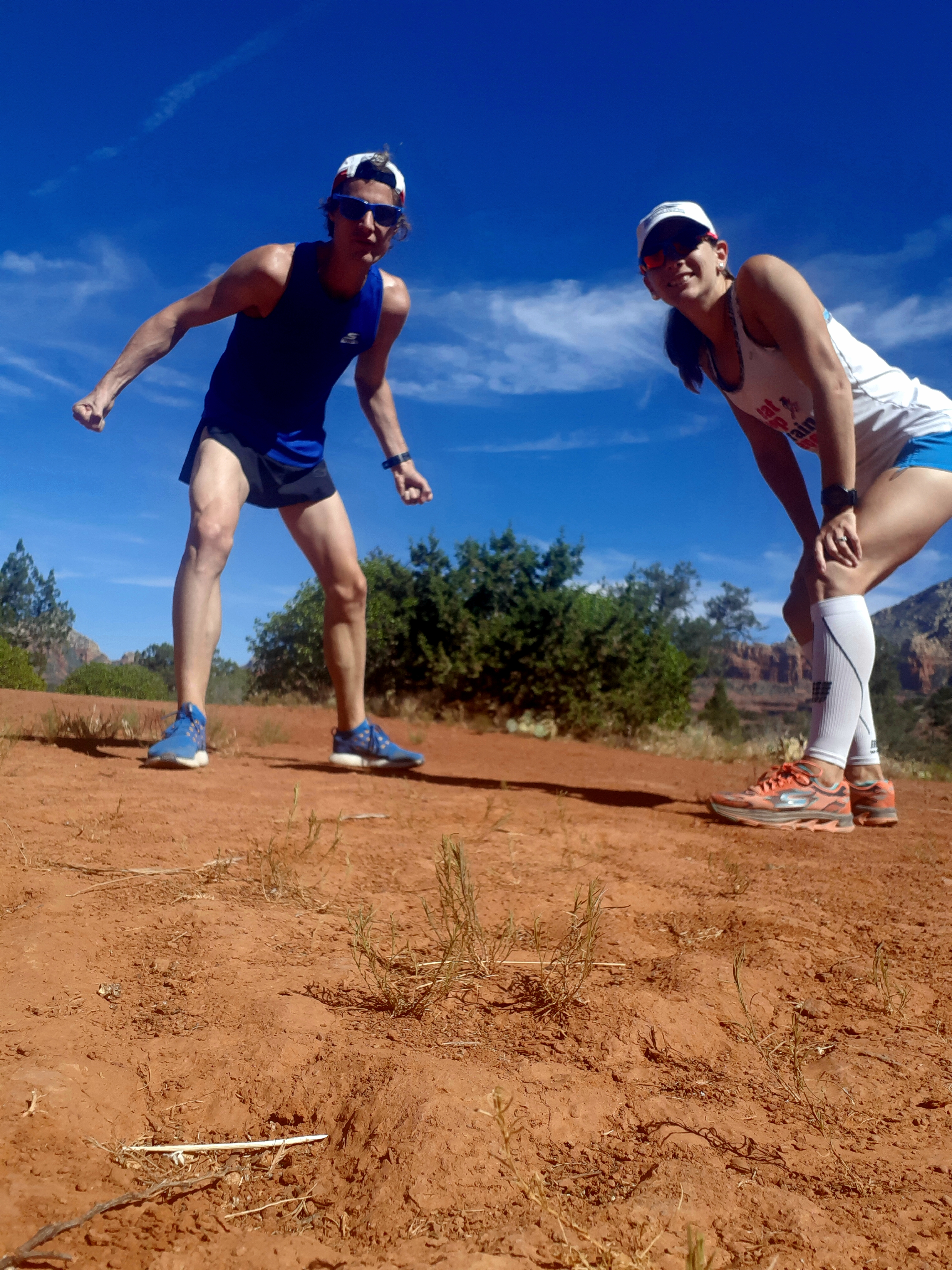 The first 5 days we had rented a car which allowed us to take a trip to Sedona for the first time! Sedona is about 1 hour away from Flagstaff and brought us down to about 4000ft from 7000 ft. This offered us a chance to catch our breath at a lower altitude but also explore the amazing red rock of the area. We travelled down the 89-A, a beautiful winding road with views that cannot be captured by words. We arrived at the Hangover trail and views did not disappoint. We opted for the Hangover trail run that totaled 14k – the hardest run possible! We hit midday heat of 100+ degrees F, had to scramble on our hands and knees to climb the side of the rock face, and endure sharp evil cacti piercing both of us at least once. Here are a few pictures of that amazing run: