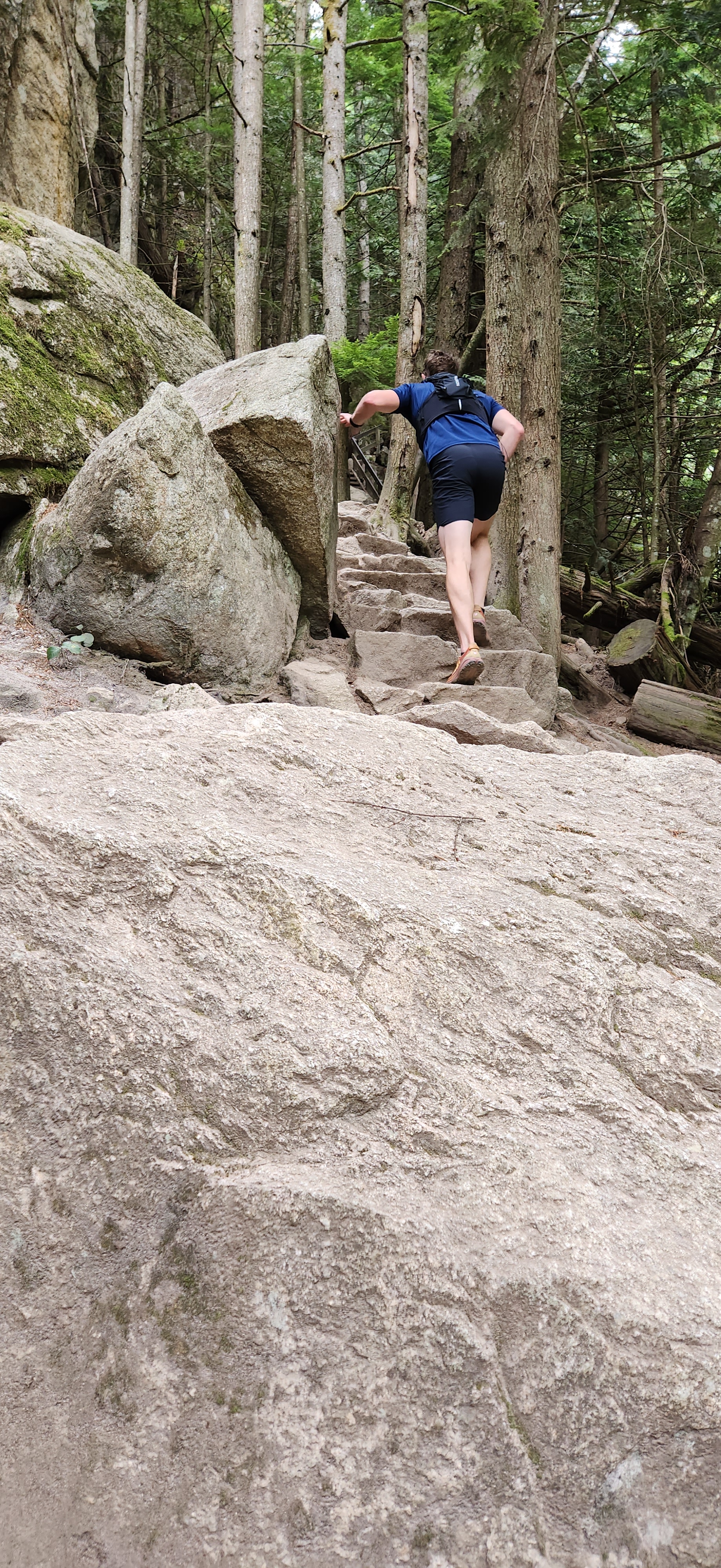So that’s exactly what we did! We even made the trip a day earlier than originally planned just so I could do this hike and not have it impact my race. The Sea to Summit trail is very technical starting with endless stairs for the first 3km of the 7km climbing a total of 900m of elevation. Most hikers take 3-5hours to complete it. The best part about the trail is knowing you don’t have to put that same amount of technical descent into your legs as you just take the Sea to Sky Gondola back down. We jumped off the plane in Vancouver and headed straight to the trail. Albeit, a little grumpy from a full day of travel. After some much needed nature exposure I came alive and was so excited to experience this trail with Josh. I’ll definitely feature this in my upcoming youtube video so be sure to check that out. We crushed it in 1hr45.