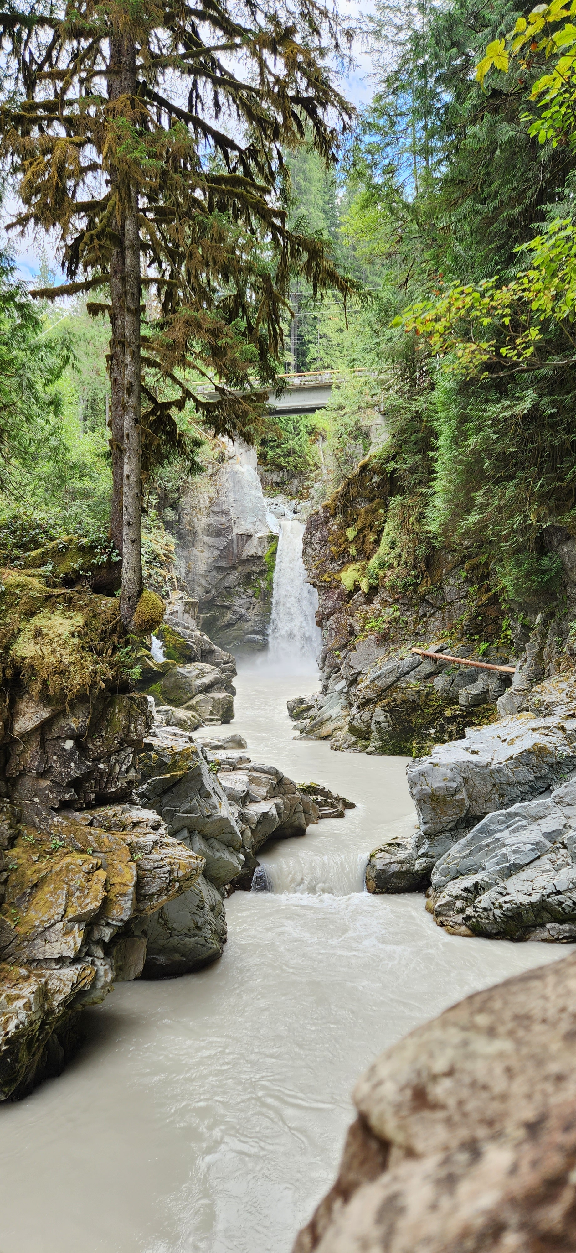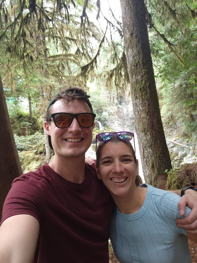 For Thursday I chose a simple loop from the front door of our airbnb. No matter where you run in Squamish it’s all so beautiful. I just love being in the forest so I really took that in alongside the mountain views. Later that day, I talked Josh into heading out to check on the waterfall that we run over but can’t really see during the race – Mamquam Falls. It was definitely worth the trip.