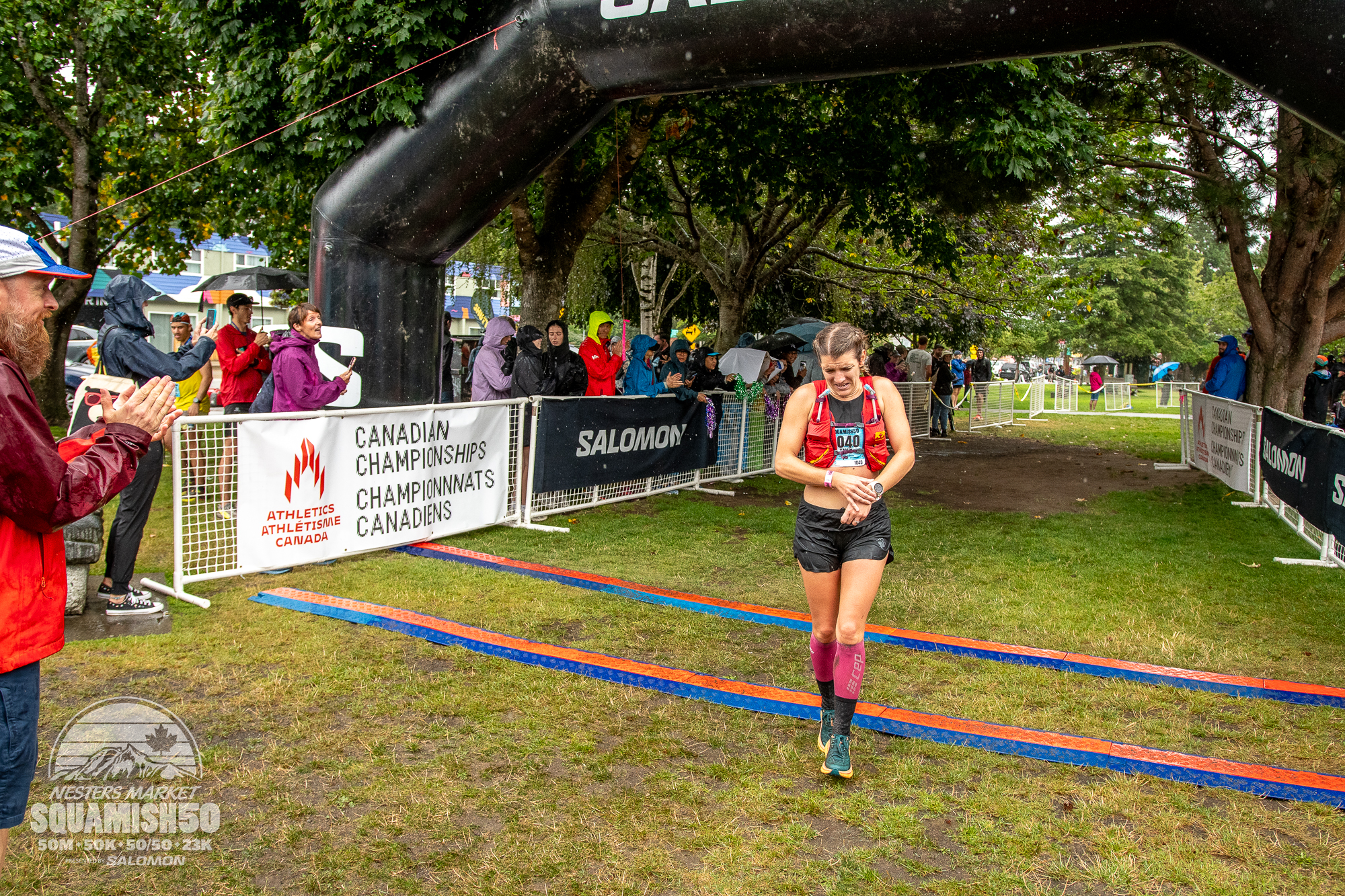 At this point, my legs felt good as I rolled through my strides over an easy 4km run. After that, we spent a few hours at the finish line waiting for the lead men and women to finish. I was so inspired by Marcus Ribi as he celebrated his way through the finish chute flying that beautiful canadian flag behind him. His emotions were raw and you could feel the energy in the crowd. He trailed behind Chris the entirety of the race only to pass him in the last section of the course and become the eventual Canadian Champion. And of course, the ever impressive Priscilla Forgie came through as the female champion. She smashed me by over 2 hours to win Squamish in 2022 at the 50mile distance only to go on the next day and do the 50/50! Robyn didn’t have the day she dreamed of but still ran with so much grit to finish 4th female/3rd Canadian. Once she finished it was time to head back to our airbnb and rest up for my own battle on the trails. If only I had known how much of a battle that was going to be.